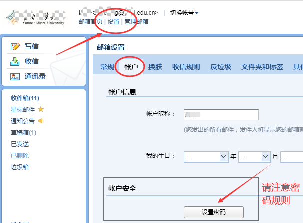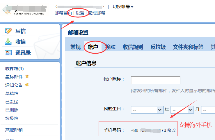 A:如果原邮箱绑定的手机需要更换成新手机,用户可以到邮箱网页版(https://mail.ldu.edu.cn) 去修改手机号,修改的方法如下:网页版-->【设置】-->【帐号】-->【帐号信息】。