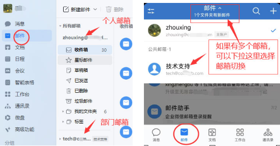 电脑端企业微信收发邮件效果 企业微信手机端收发邮件效果
