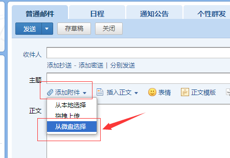 A:超大附件一般都比较大,直接发送到收件方邮箱不仅发送时间会很长,还有可能因对方邮箱容量不足而退信,所以超大附件是不直接发送到收件人邮箱,对方收到的只是一个URL下载链接。超大附件已方服务器的保存期是15天或一个月,过期后无法下载附件。有没有更好的办法发送不过期的超大附件呢? 从微盘里发出的超大附件是无限期的。操作的方法如下:注意微盘是有容量限制,超容需要额外购买。